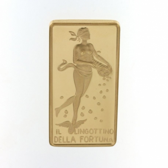 Lingottino della Fortuna in oro 750% da 50 grammi, ideale come regalo per battesimo, comunione o cresima.