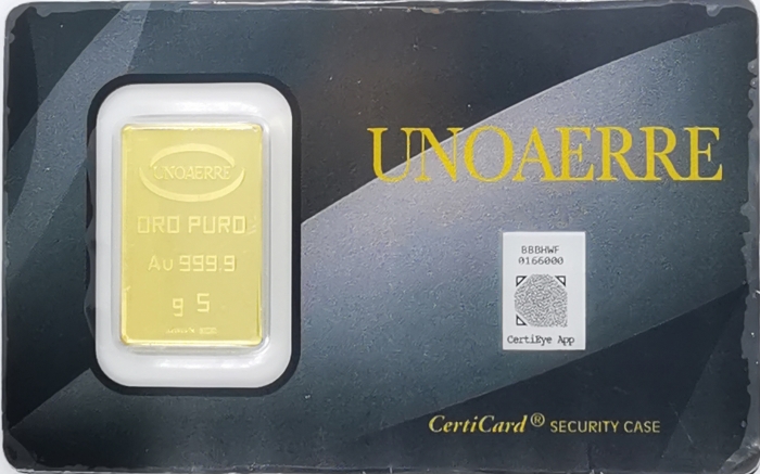 Il lingotto viene consegnato nel blister sigillato originale UNOAERRE (come da foto dimostrativa) e nostra confezione regalo.