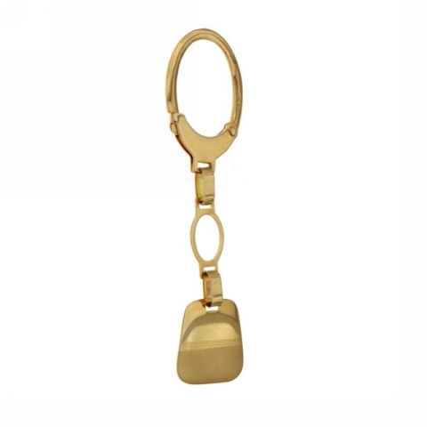 Elegante portachiavi in oro giallo lucido, con piastrina mezza satinata rettangolare smussata. Gioiello Made in Italy completo di confezione regalo e certificato di garanzia.