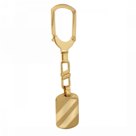 Elegante portachiavi in oro giallo lucido, con piastrina mezza satinata rettangolare smussata. Gioiello Made in Italy completo di confezione regalo e certificato di garanzia.