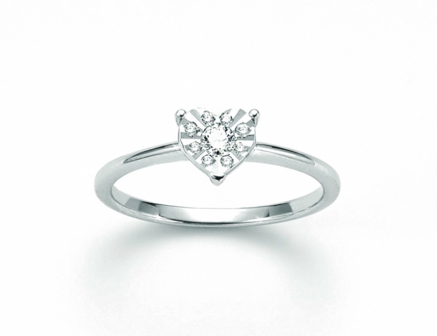 Anello Miluna forma Cuore con Diamanti da circa 0.11ct totali... 0.07ct la pietra centrale più ulteriori 8 diamanti a contorno da 0.038ct.