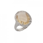 Anello BOCCADAMO cocktail in bronzo rodiato con cristallo briolettecolor champagne incastonato su base con finitura di zirconi.