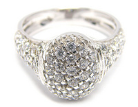 Anello in oro bianco 18kt realizzato con una forma ovale centrale sulla quale sono incastonati ben 24 zirconi taglio brillante.
