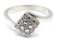 Anello in oro bianco 18kt a forma di rombo con incastonati 9 zirconi taglio brillante.