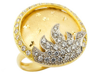 L'anello rappresenta il cielo stellato con dei raggi di Sole che spuntano su di un lato... anello particolarissimo ed UNICO nel suo genere.