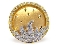 Anello a Sole in oro bianco e giallo 18kt con zirconi taglio brillante incastonati nei raggi ed a contorno dello scudo.