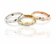 Anello Rosario in argento 925 bianco, giallo o rosa e zirconi bianchi incastonati nei grani e nella Crocetta centrale.