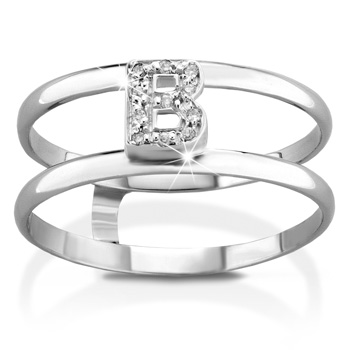 VERA - 18k White Gold and B letter with Natural Diamonds Ring