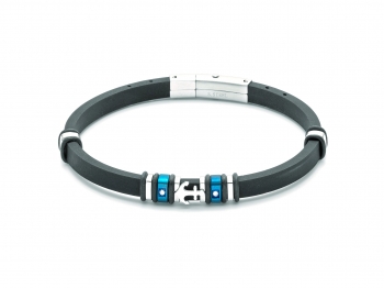 Bracciale Yukiko Uomo in acciaio e caucciù con zirconi bianchi (Cubic Zirconia).