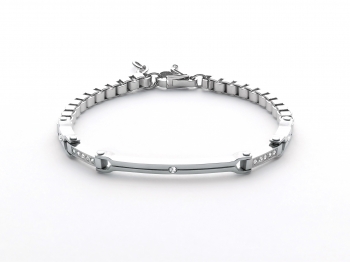 Bracciale Yukiko Uomo in acciaio con Diamante (incastonato nel moschettone di chiusura) e 13 zirconi bianchi (Cubic Zirconia).