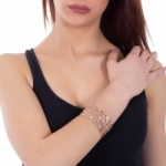 Bracciale BOCCADAMO Siria rigido in bronzo placcato oro rosa (diametro cm 6), superficie dal motivo decorativo indiano e texture laserata con cristalli Swarovski crystal (larghezza cm 3,5).