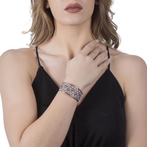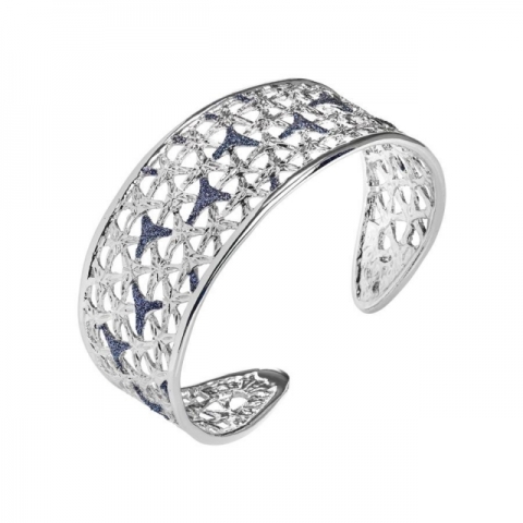 Bracciale BOCCADAMO Alissa rigido in bronzo rodiato (diametro cm 6) con decoro floreale realizzato in elettrofusione e glitter black (larghezza cm 3).