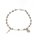 Bracciale Rosario con maglia diamantata, grani lucidi, Crocetta e Madonna Miracolosa il tutto in oro bianco 18kt.