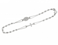 Bracciale Rosario con maglia diamantata, grani lucidi, Crocetta e Madonna Miracolosa il tutto in oro bianco 18kt.