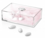 Scatola degustazione femminuccia 16x5x10 cm in plexiglass con placca argento e 350 gr. di confetti avvolti nel tulle rosa. Le Bebé ha pensato anche al battesimo del tuo piccolo! Gioiello completo di certificato di garanzia.