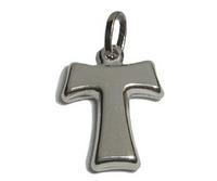 Ciondolo scatolato a forma di Croce TAU, da un lato lucida e dell'altro satina, in oro bianco 18kt.