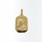 Medaglia di forma rettangolare smussata in oro giallo 18kt con immagine della Fonte Battesimale in rilievo di finitura lucida e satinata.