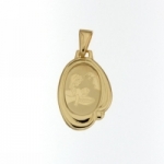 Medaglia di forma ovale in oro giallo 18kt con cornice a rilievo e immagine della Fonte Battesimale incisa di finitura lucida e satinata. Gioiello Made in Italy completo di confezione regalo e certificato di garanzia.
