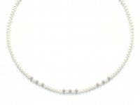 La collana è composta da 9 sfere diamantate in oro bianco 18kt ed un filo di perle da 4-4,5 mm.