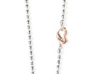 La chiusura è un moschettone a forma di cuore in argento 925% placcato oro rosa.