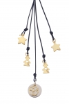 Cordino con ciondoli My Charm 2 bimbe e 2 stelle collezione Love is in oro giallo, bianco o rosa 18kt. Il ciondolo tondo centrale è composto da un traforo in oro 18kt con la scritta Love is ed un tondino di sfondo in argento bianco a contrasto. E' possibile sia richiedere il colore dell'oro, sia un incisione sul retro del ciondolo tondo grande centrale. Tali informazioni sono da comunicare nel campo note del carrello d'acquisto. Gioiello Made in Italy accompagnato dalla sua confezione regalo originale My Charm!
