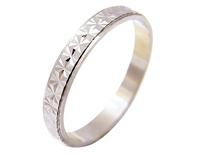 Fedina in oro bianco 18kt a fascia stretta con disegno a fiocchi di neve.