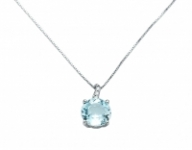 9K White Gold 0.021ct Natural Diamond with blue Topaz Pendant Necklace MILUNA