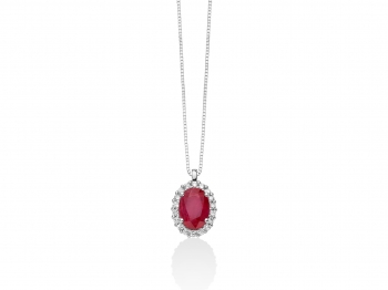 Giricollo Miluna Kate con Rubino Naturale da 0.84ct e 18 Diamanti Naturali a contorno da 0.135ct in oro bianco 18kt.