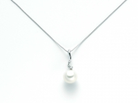 9K White Gold 0.0225ct Natural Diamond with Pearl Pendant Necklace MILUNA