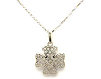 Catenina girocollo in oro bianco 18kt con ciondolo a forma di quadrifoglio tempestato di pietre cubic zirconia taglio brillante.