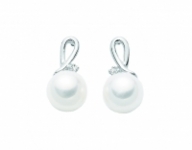 9K White Gold, White Pearl and Diamonds Earrings