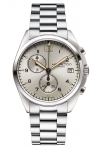 Orologio Hamilton Khaki Aviation Pilot Pioneer Chrono ref. h76512155. Scheda tecnica: *Cassa: tonda da 41 mm di larghezza; *Movimento a quarzo Svizzero Eta G10.211; *Quadrante: beige; *Sfere: trattate con luminus; *Bracciale: acciaio lucido e satinato con chiusura deployante; *Vetro: zaffiro antigraffio; *Corona: a pressione; *Fondello: serrato a viti; *Funzione: data con giorno; *Water Resistant: fino a 100 metri - 10 ATM.
