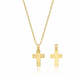 Collana uomo con maglia travertino pieno e pendente croce in oro giallo 18kt e diamante naturale