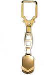 Elegante portachiavi in oro giallo lucido, con piastrina rettangolare smussata e doppio riporto a "V" in oro giallo satinato. Gioiello Made in Italy completo di confezione regalo.