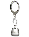 Portachiavi in oro bianco con una piastra di forma trapezioidale ad angoli smussati. La piastra e 1/2 satinata ed al centro presenta una lavorazione a "zig-zag" molto particolare.Gioiello Made in Italy completo di confezione regalo.