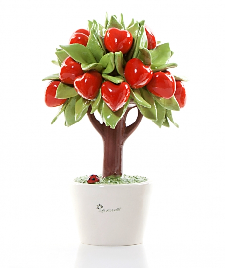 Alberello Profumatore con cuori misura media firmato Gli Alberelli. L'alberello è alto 21 cm e largo 14 cm. Esclusiva idee regalo interamente realizzata a mano da esperti Maestri ceramisti di Capodimonte. Prodotto interamente Made in Italy, completo di confezione regalo originale Gli Alberelli.
