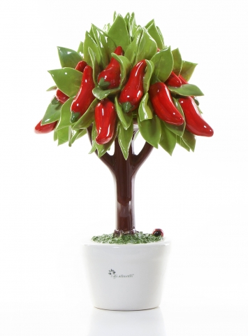 Alberello Profumatore con peperoncini misura grande firmato Gli Alberelli. L'alberello è alto 28 cm e largo 19 cm. Esclusiva idee regalo interamente realizzata a mano da esperti Maestri ceramisti di Capodimonte. Prodotto interamente Made in Italy, completo di confezione regalo originale Gli Alberelli.