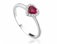 Anello Roger Gems con Rubino Naturale a cuore da 0.30ct e contorno di Diamanti da 0.10ct totali su montatura in oro bianco 18kt.
