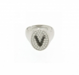 Anello ovale da mignolo in argento 925 con iniziale V in zirconi