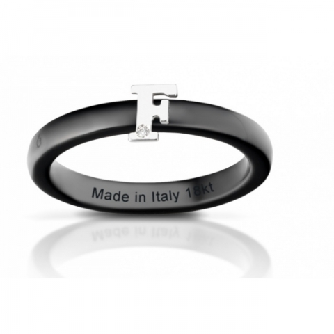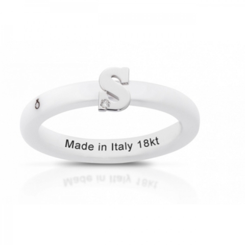 Anello Melissa Jewels in ceramica, lettera oro 18kt e diamante naturale