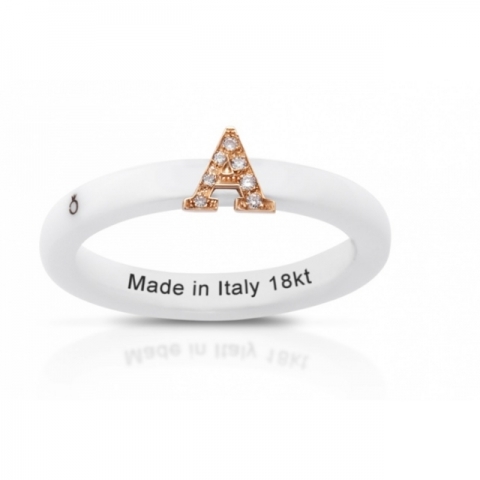 Anello Melissa Jewels in ceramica, lettera oro 18kt e diamanti naturali