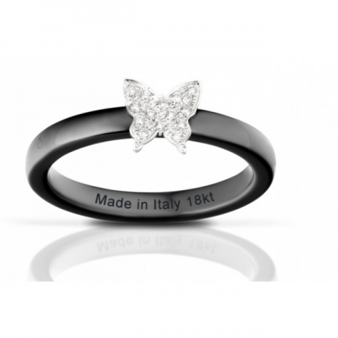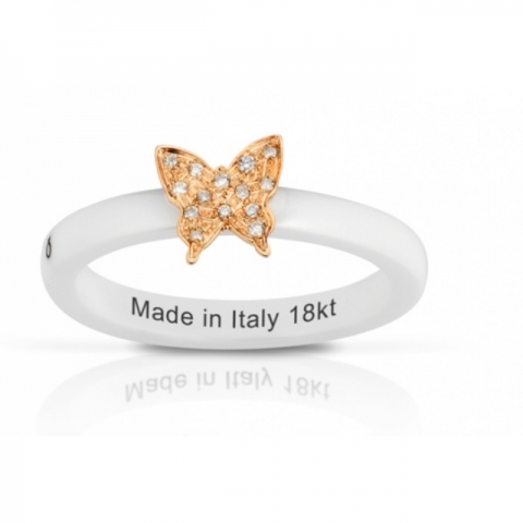 Anello Melissa Jewels in ceramica, farfalla oro 18kt e diamanti naturali