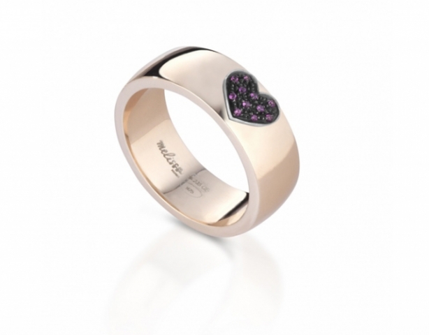 Anello fascia Melissa Jewels in Argento 925% con Cuore in oro 18kt e pavè di 0.08ct Rubini Naturali taglio brillante.