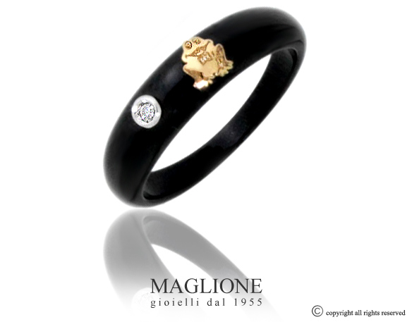 Anello Dalù in ceramica con colore a scelta, rana in oro bianco o giallo 18kt e diamante naturale