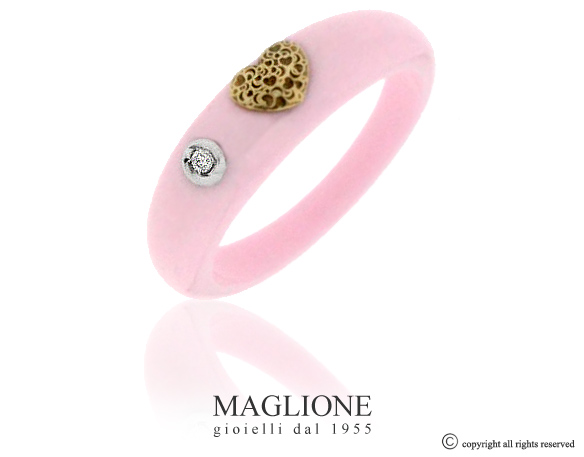 Anello Dalù in ceramica con colore a scelta, cuore in oro bianco o giallo 18kt e diamante naturale