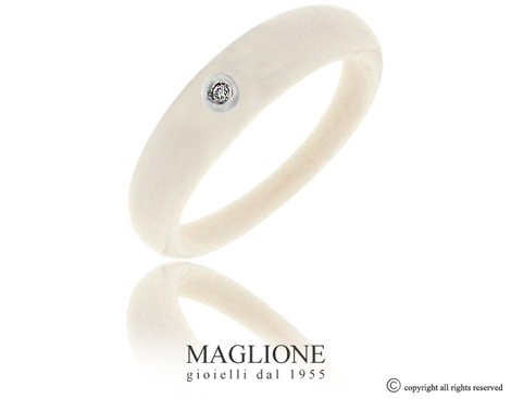 Anello Dalù in ceramica avorio e oro bianco 18kt con diamante naturale