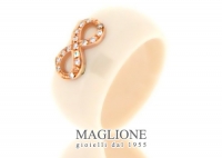 Anello Dalù in ceramica avorio e simbolo dell'Infinito in oro 18kt bianco giallo o rosa e diamanti
