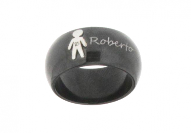 Anello Dalù personalizzabile in ceramica nera o bianca con bimbo in oro bianco o giallo 18kt e diamante.