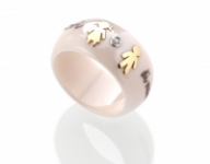 Anello DaLù personalizzabile in ceramica nera o avorio con bimbo e bimba in oro bianco o giallo 18kt e diamante.