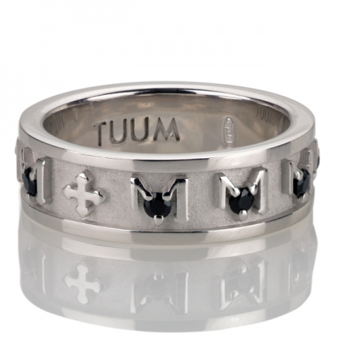 L'anello DECEM è caratterizzato da 10 M dell'Ave Maria con incastonati 10 Spinelli neri nei grani, così da poterlo utilizzare anche quando si recita la Santa preghiera del Rosario.